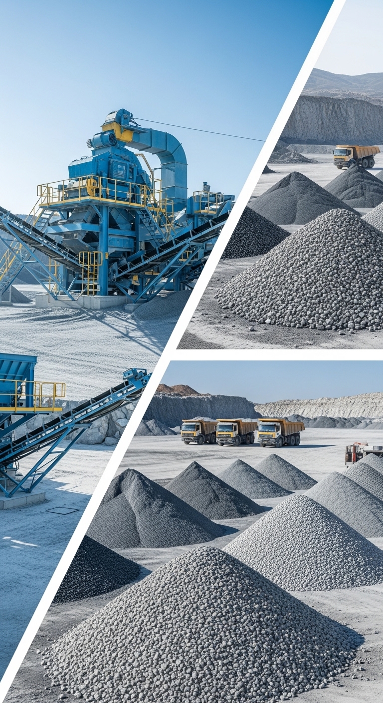 Yılların deneyimiyle doğal kaya kütlelerinden en kaliteli agrega, mıcır, blok taş ve dolgu malzemelerini üretiyoruz. Modern kırma, eleme ve yıkama tesislerimizle TSE standartlarında ürün garantisi sunuyoruz.