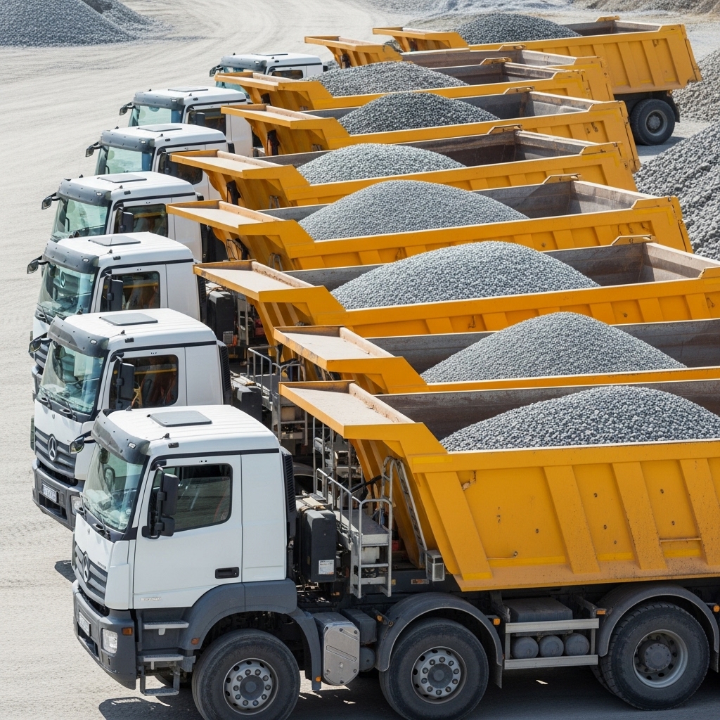 Kendi kamyon filomuz ile şantiye sahalarına, beton santrallerine güvenilir teslimat hizmeti.